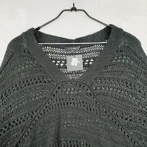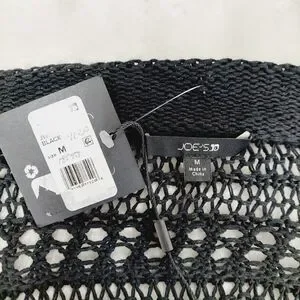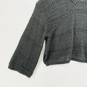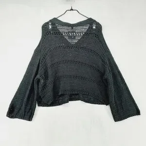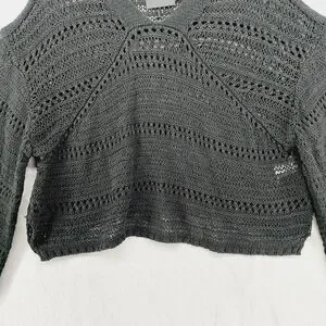 New Joe's Women's Black V-Neck Long Sleeve Knit Crochet Cropped Sweater P3690