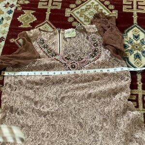 This top is in excellent condition with no tears or rips. The sleeves are made of 100% stunning silk, flowing effortlessly on your shoulders like a butterfly. You’re going to love it!