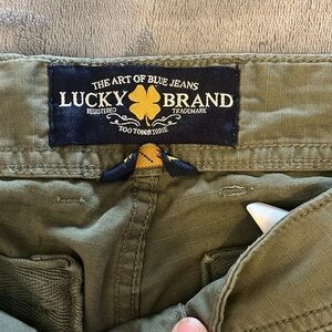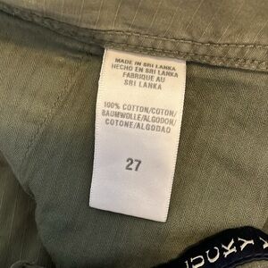 Women's Lucky Brand Army Green embroidered Roll Cuff Capris, Size 4