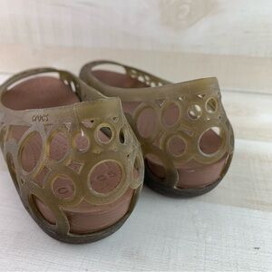 Crocs Adrina Peep Toe Brownish Clear Jelly Flats Ballet Sandals Shoes