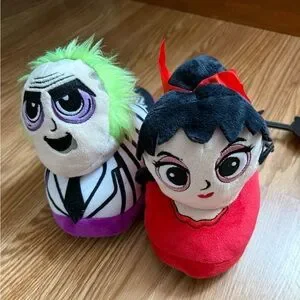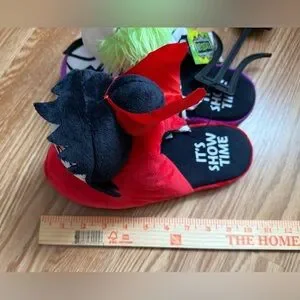 Fun plush slippers featuring Beetlejuice and Lydia. Bright and colorful design. New with tags attached. From a smoke free home. Please see my pictures for the detailing on the slippers.