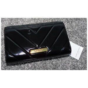 Up for sale is a Kurt Geiger Extra Mini Kensington Clutch Crossbody Bag in Black Shiny Leather. This crossbody bag is brand new but there are a couple small indents within the leather on the backside from being mixed in a box with other product. This is why we listed it as "new with defects". The retail box is NOT included. You will receive ONLY what you see in the pictures above.