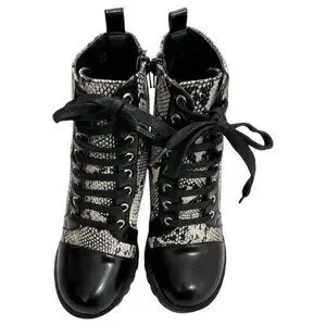 WILD DIVA Lounge Lace Up Boots Snake Print & Black Heeled All Man Made Size 6