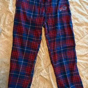 Cozy plaid lounge pants with Buffalo Bills logo. Ideal for fans. New without tags.