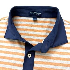 - Peter Millar Crown Crafted Gray Orange Stripe Mens Polo Sz L