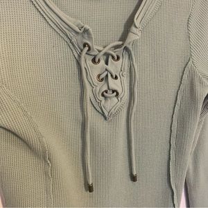 Sundance Sage Green Thermal Lace Up Long Sleeve Top Size Small