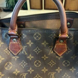 This bag is from the late 70,s and bought at neiman marcus. I do not have the receipt anymore. I am the only owner. Outside. I cannot see and rips, tears or fraying. The inside has a few light stain. Looks more like fading. One frayed side at the top on one side.as shown in the pictures. No date codes or authorization codes in this time period.