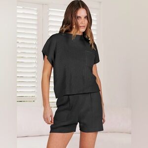Women's Two Piece Summer Outfits Knit Sweater Short Sets Pullover Tops & Shorts Lounge Matching Clothes Set. Super cute and comfortable! Bought off Amazon.. never worn, because I kept a different color.