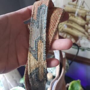 a few inner slp pockets. velcro at the main opening in great condition. double sided pattern. super unique bag!