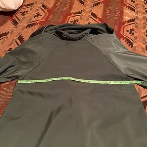 Elegant looking reversible Rain Jacket. Black or Green. It looks great either way. It comes with a brand new with tags carry purse. I can’t find a size on it and it may be a one size. I wear a medium but it is oversized on me. If interested I will get you measurements. High quality garment.