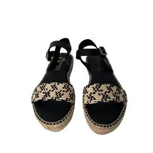 Paseart Women's Espadrille Platform Sandals Sz 39 US 8.5 Black Tan Interwoven