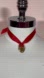 Adorable Victorian revival gold heart lock hangs on a rich red satin ribbon to make a dramatic choker necklace. Adjustable length ties around the neck and a Gothic style. Lovely heavy gold tone heart lock with heavy patina does not open and has no key; but perhaps you have the key to this Heart.