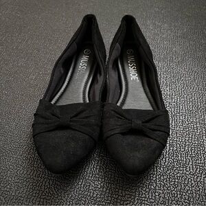 Elegant Black Flats with Pointed Toe and Bow Detail
