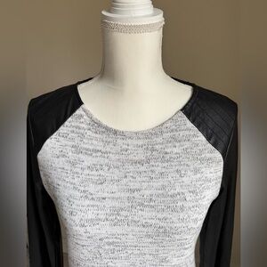 SANCTUARY Black & White Sweater Dress w/ Faux Leather 3/4 Sleeves Sz S