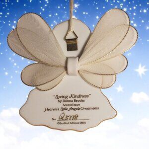 A Beautiful Collectible Ornament! This exquisite Heaven’s Little Angels porcelain ornament, titled “Loving Kindness”, is designed by renowned artist Donna Brooks for Bradford Editions.