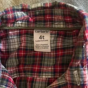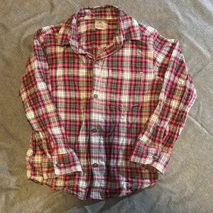 Classic plaid flannel shirt. Features a button-up front. Soft and comfortable fabric.