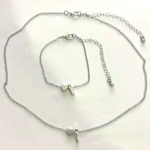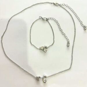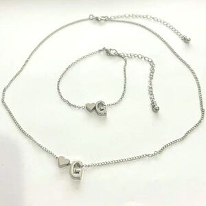 Love Heart English Letter Heart Pendant Necklace & Bracelet Set silver alloy NWT
