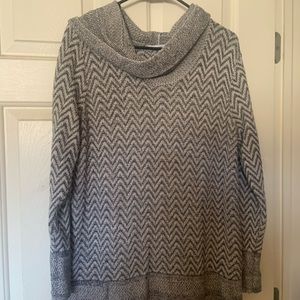 Grey/Black herringbone design,swooped neck sweater. Soft and light weight.