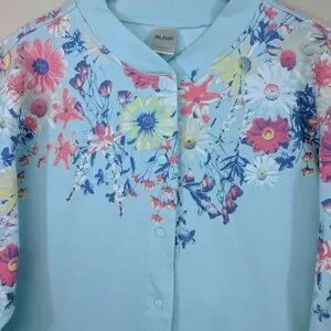 Soft cotton blend, front pockets, snap front, a few spots on the back note photos, otherwise great condition.
