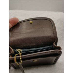 Vintage Coach Brown Leather Keychain Wallet with Zipper Closure & Brass Carabine