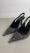 High-heel slingback shoes with rhinestone details. Pointed toe.