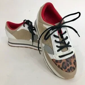 These nifty sneaks sporting a collage of leopard print, taupe, tan and red, were purchased at Zara on the Avenue des Champs-Élysées in 2018.