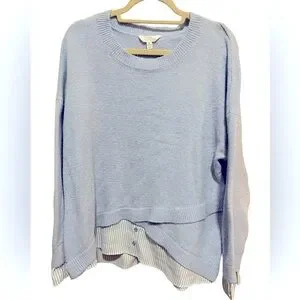Time and Tru - Light Blue crew neck sweater with “shirt trimming” in blue/white