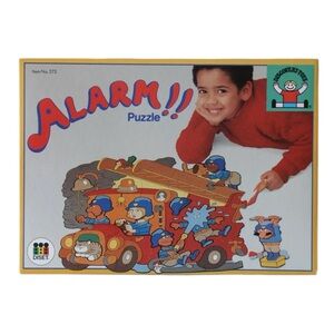 Vintage Discovery Toys Puzzle Alarm!! 36 Pieces 1988 Fire Truck Puzzle. Box is distressed with damage that has been repaired with tape. Puzzle is in great condition.