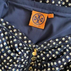 Tory Burch Silk Navy Polka Dots Tea Length Dress with matching Shaw