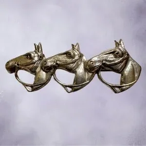 Beautifully Detailed, Three Horse Heads With Bridle & Reins.