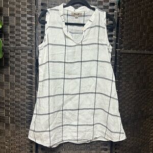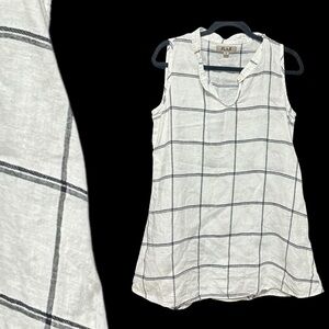 Flax linen white dress gray square print slightly Aline dress small capsule