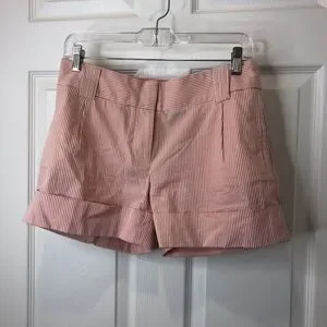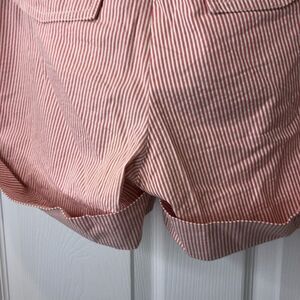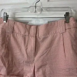 J. Crew pink and white striped city fit shorts with 2.5 in cuff and 2in band on waist with belt loops. Two side and two back pockets. Length 12in, inseam 4in, waist 15.5in, size 2 👍🏾