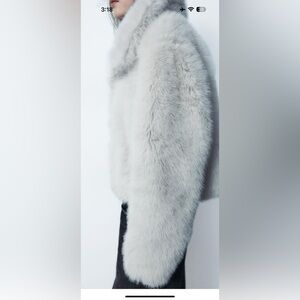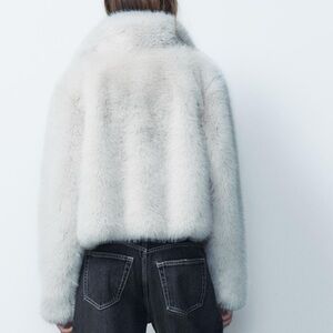 Warm & lux fur feel short coat. Long sleeves, lapel collar, side inseam pockets