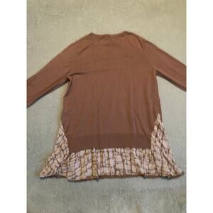 Logo Lori Goldstein Sweater Top Large Pullover V-Neck Layered Brown Retro Prep