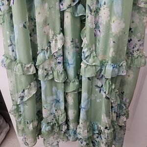 Mac Duggal Floral Print Chiffon Cascading Ruffle Raglan Gown SZ 2 NEW 68216