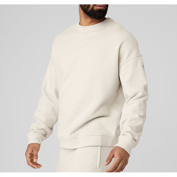 Alo Renown Heavy Weight Crew Neck Pullover Bone Beige Oversized Sweatshirt L