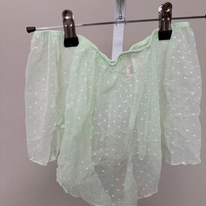 Experience comfort and style with this sheer mint green sleepwear set. Perfect for a relaxing night in.