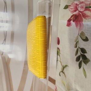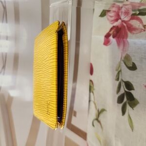 Great wallet in good condition for us that are fussy. Having said that there is some colour loss at the edges that looks As you can see it doesn't look bad or odd. Very mild as you can see. Inside is perfectly clean. The coin area is spotless although at the base of the flap ther eis a little wear as you can see in the photo. Snap closing are tight so nothing is coming out when you put it in there. Credit card slots are nice and tight so you wont need to put anything behind them to keep them in place. No splitting or cracking on the epi leather anywhere that I can see.