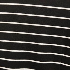 Stylish black and white striped button-front blazer. Features ruched sleeve detail. Perfect for casual wear or for a little dressed up workday. Soft material and very stretchy.