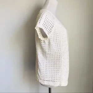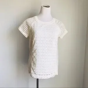 Madewell blouse Mixed-pattern eyelet looks sweet on a boxy ,styled with a round neckline and short raglan sleeves. Back keyhole closure. Lined.