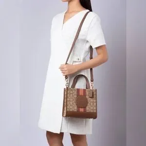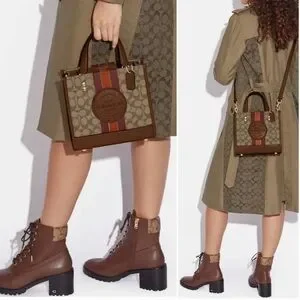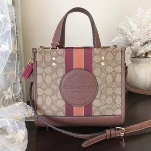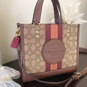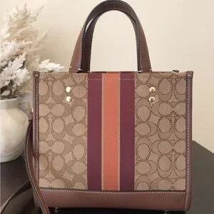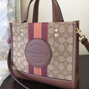 Coach Dempsey Tote 22 In Signature Jacquard With Stripe And Patch