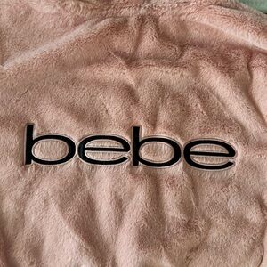 BEBE Sport Women’s Pink Faux Fur Coat Sip Front Warm Hood Jacket Medium M