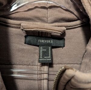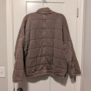 Quilted jacket from Forever 21. Size medium, oversized fit. Brownish/pinkish color, almost like a mauve but depends on the lighting. Zipper closure. Side pockets. Thick and heavyweight. I bought this on posh and just don’t reach for it as much as I thought I would. Minor pilling that would come off easily with a fabric shaver (mine just broke)