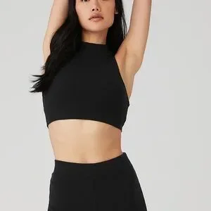 Alo Yoga - Goddess Mock Neck Rib Tank in Black