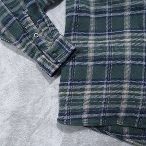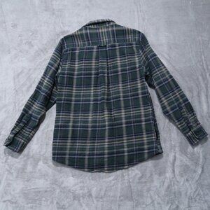 Woolrich Shirt Mens M Green Brawny Flannel Plaid Shacket Button Down Outdoors Chest and Side Pockets Multicolor Green Blue Yellow
