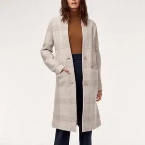Adorable long cardigan coat - it's much thicker than a shacket and served me well during west coast winters. Can also be a great spring transitional piece. Fit is pretty true to size and there isn't much room for those with larger hips (like myself), but I rarely buttoned up this coat.