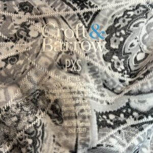 Croft & Barrow women’s long sleeve shirt, PXS, black/ gray design, flattering neckline, like new, 95 % polyester, 5% spandex, pit to pit approximately 16.5 in