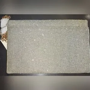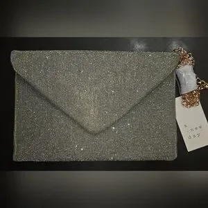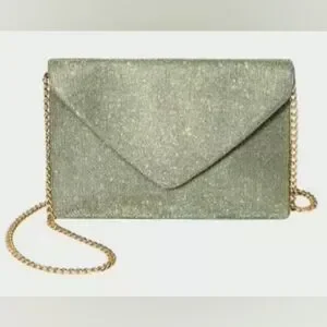This chic envelope-shaped clutch can be used used for everyday carry or as a stylish evening bag. It has a magnetic flap closure that offers easy access while keeping things contained; and interior zip pocket and exterior back slip pocket for easy organization; gold chain link strap that can be worn across your body or tucked in to carry as a clutch.