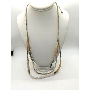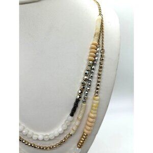 Lane Bryant Necklace Layered Beige White Silver-tone Beaded With Gold-tone 28 in