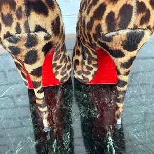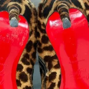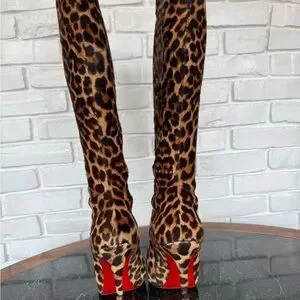 Christian Louboutin super comfy leopard pony hair inside zipper high boots. Gently worn on toes and heels see pictures. These are so comfortable seeing they are so high! I have put forever red soles on them so they always look new!❤️